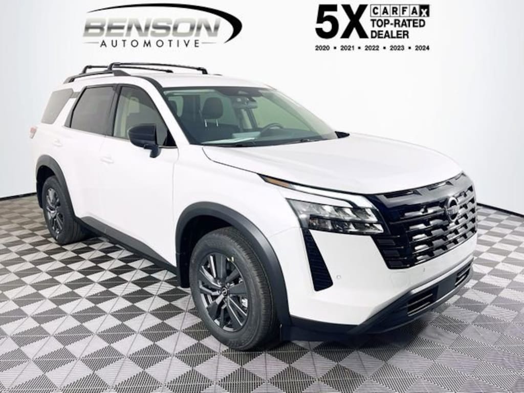 Recent Arrival! Check out this 2026 Nissan Pathfinder SV available at Benson Nissan of Spartanburg. Offered at just $36716, this Nissan Pathfinder wonât last long. This FWD Nissan Pathfinder SV is powered by a 3.5L V6 DOHC an includes these features and benefits 18" Painted Alloy Wheels, 3rd row seats: bench, 4-Wheel Disc Brakes, 6 Speakers, ABS brakes, Air Conditioning, Alloy wheels, AM/FM radio: SiriusXM w/360L, Auto High-beam Headlights, Automatic temperature control, Brake assist, Bumpers: body-color, Cloth Seating Surfaces, Delay-off headlights, Driver door bin, Driver vanity mirror, Dual front impact airbags, Dual front side impact airbags, Electronic Stability Control, Emergency communication system: NissanConnect Services, Four wheel independent suspension, Front anti-roll bar, Front Bucket Seats, Front Center Armrest, Front dual zone A/C, Front reading lights, Fully automatic headlights, Garage door transmitter: myQ Connected Garage, Heated door mirrors, Heated Front Bucket Seats, Heated front seats, Illuminated entry, Knee airbag, Low tire pressure warning, NissanConnect featuring Apple CarPlay and Android Auto, Occupant sensing airbag, Outside temperature display, Overhead airbag, Overhead console, Panic alarm, Passenger door bin, Passenger vanity mirror, Power door mirrors, Power driver seat, Power Liftgate, Power steering, Power windows, Premium Paint, Radio data system, Radio: AM/FM Audio System with NissanConnect, Rear air conditioning, Rear anti-roll bar, Rear reading lights, Rear seat center armrest, Rear side impact airbag, Rear window defroster, Rear window wiper, Reclining 3rd row seat, Remote keyless entry, Security system, Speed control, Speed-sensing steering, Split folding rear seat, Spoiler, Steering wheel mounted audio controls, Tachometer, Telescoping steering wheel, Tilt steering wheel, Traction control, Trip computer, and Variably intermittent wipers.